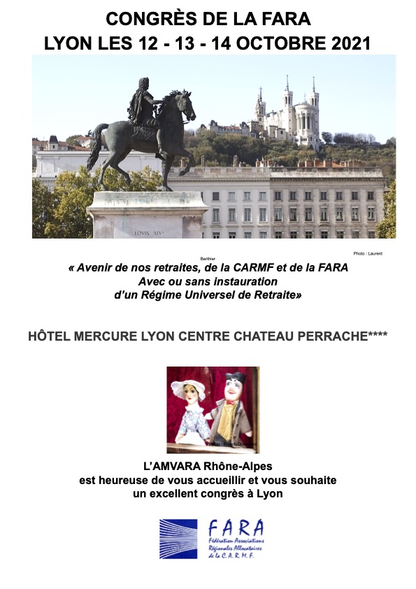 Congrès National de la FARA LE CONGRÈS NATIONAL de la FARA a eu lieu à LYON du 12 au 14 OCTOBRE 2021 à l’Hôtel Mercure Lyon-Centre « Château Perrache » Voir le programme complet du congrès