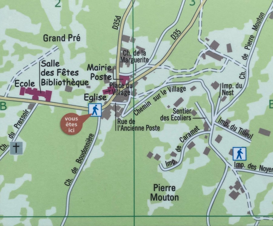 Rendez-vous à 14h30 au lieu-dit Les Guillets : c’est à l’arrêt de bus au bord de la route de Saint-Nizier après avoir dépassé le Mémorial. Il y a pas mal de places de parking.