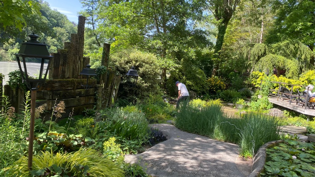 L’harmonie entre l’eau, les fleurs, le bois et la roche crée un cadre bucolique, nous invitant à nous immerger dans cette oasis de beauté naturelle.