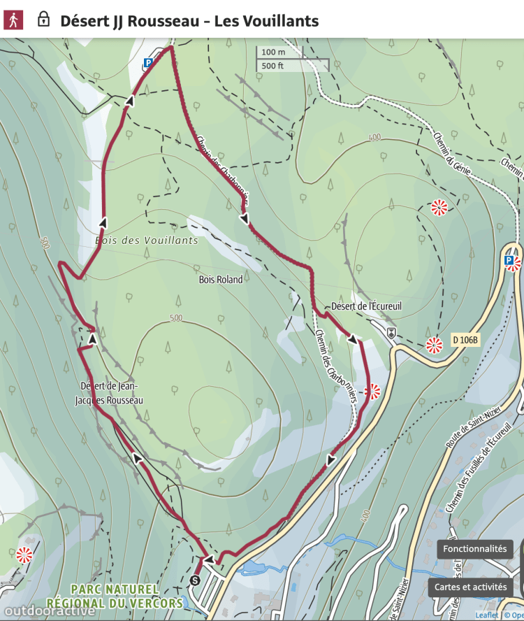 Le rendez-vous était à 14.30 heures sur le Parking au lieu-dit le « Désert Jean-Jacques Rousseau » sur la Route de Saint-Nizier quand on a dépassé Seyssinet-Pariset.