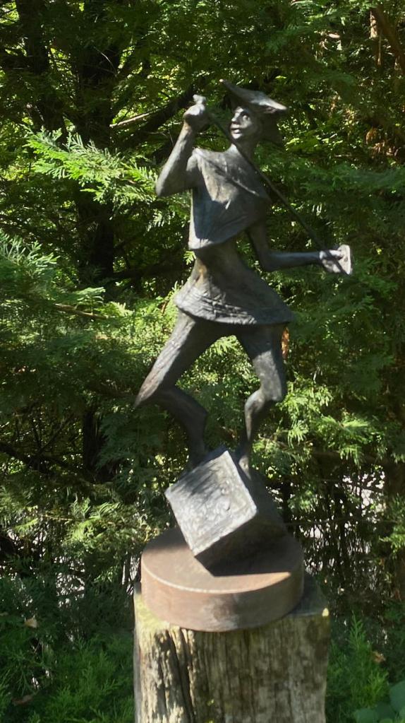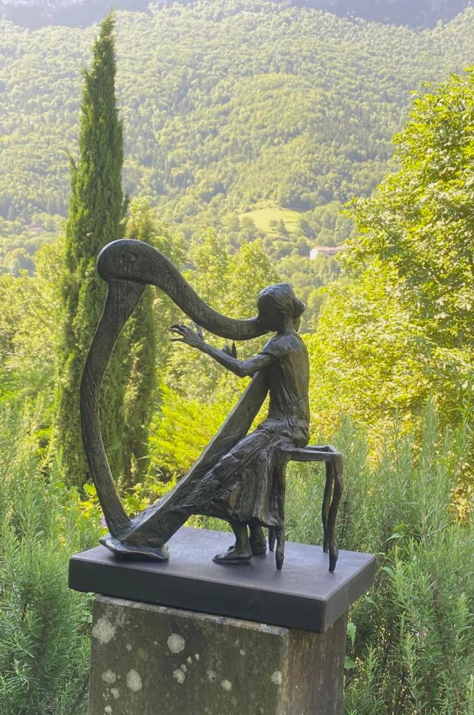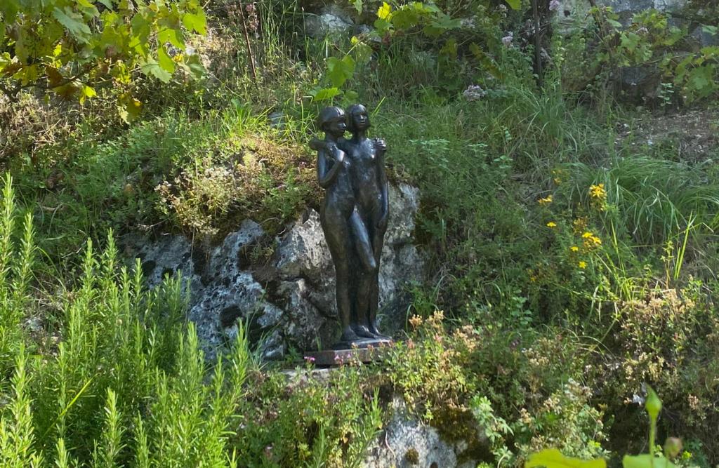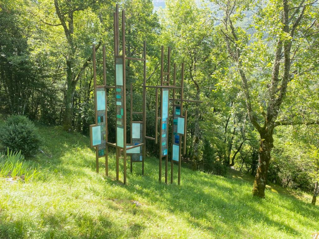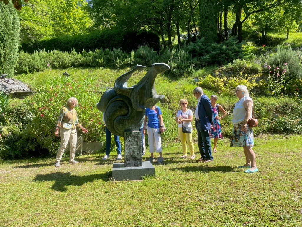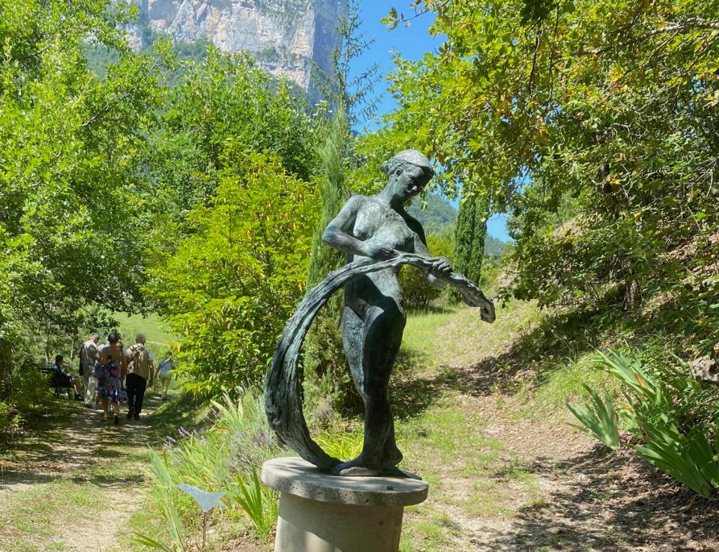 La journée a débuté par la visite du Parc-atelier « Roche Muse » de Madame Tineke Bot : un parc de 3 ha situé au pied des falaises du cirque de Choranche et dans lequel serpentent des sentiers parsemés des sculptures de l’artiste néerlandaise, amie de Jacqueline Franco.