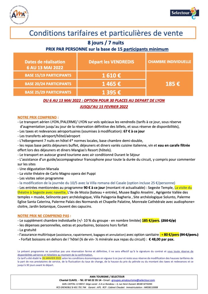 MR38 vous propose un voyage en Sicile du 6 au 13 mai 2022