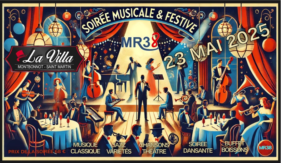 Grande soirée musicale & festive avec MR38 dans une ambiance cabaret avec de la musique classique, du jazz, des variétés, des chansons, du théâtre et une soirée dansante.
